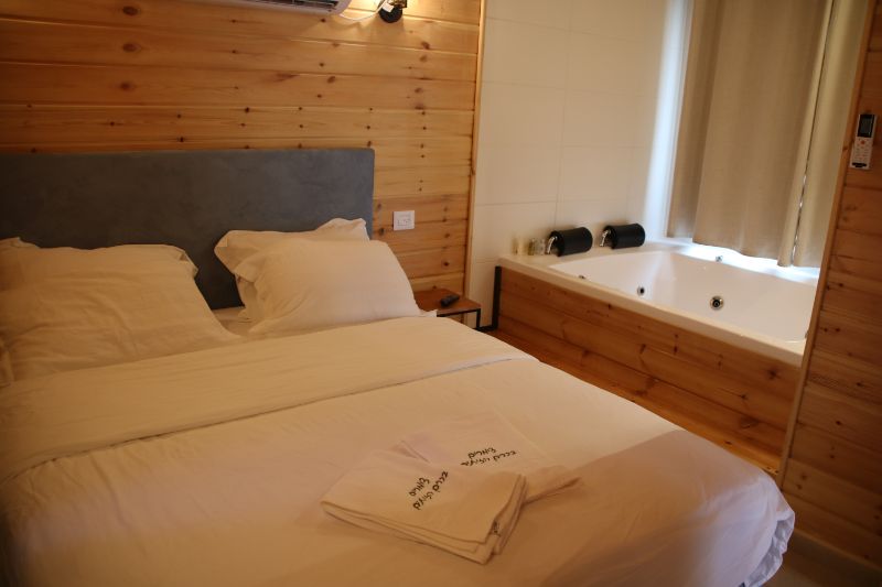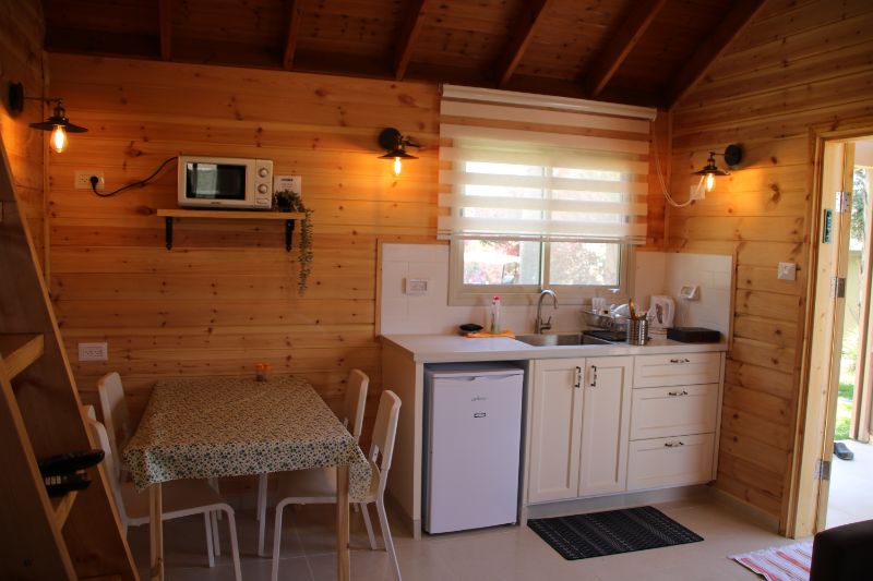 ראשי » צימרים » צימר עץ – בקתה צימר עץ - בקתהבקתת צימר העץ, שבצימרים בכרם הזיתים בדרום, בצפון הנגב, בנויה בסגנון כפרי מעץ, אורחינו נהנים משקט ושלווה פסטורלית ופרטיות. הבקתה מתאימה לזוגות ומשפחה עד 5 נפשות.בצימר בחלל אחד - סלון, טלוויזית LED גדולה בלווין. ספה וכורסא הנפתחות למיטות המשמש כפתרון לינה ל-3 אנשים. מטבחון מאובזר, כירה חשמלית, פינת קפה/תה מיקרו מקרר ופינת אוכל. « הקודםהבא »